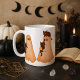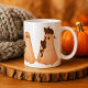 Embrace the fun side of spooky season with this adorable personalized Halloween mug. The cute illustration features a whimsical ghost, a tiny black cat, and a harvest pumpkin surrounded by beautiful autumn florals. Easily customize this mug with a custom name or message to create a unique and thoughtful gift for Halloween, a fall birthday, or a fun addition to your seasonal decor. This mug is a perfect, customizable companion for your fall drinks.