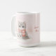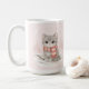 This adorable coffee mug features a cute, sitting kitten wearing a pink and white striped scarf, set against a soft, snowy winter scene. The whimsical watercolor style creates a cozy, dreamy look. It is fully personalizable; simply add a custom name to the design. This charming mug is the perfect holiday or birthday gift for cat lovers, kitten owners, and anyone who loves cute, pastel winter decor.