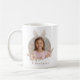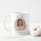 This elegant Easter bunny photo mug features a soft floral wreath design and space for a custom child photo and name, creating a timeless memory parents and grandparents will treasure.