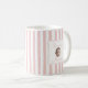Celebrate her new role as mom with this charming personalized coffee mug featuring a baby name and "Mommy" title in a delicate framed design. The soft blush pink vertical stripes create a fresh, modern look perfect for morning coffee or tea. A thoughtful gift for new moms on Mother's Day, baby showers, or hospital visits.