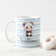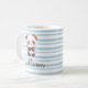 Customize the mug with your child's name in a beautiful blue script font. The name includes a thin dark outline that ensures the text stays sharp and easy to read against the striped pattern, making it a truly special keepsake. Whether they are enjoying their morning milk or a cozy cup of hot cocoa, this custom mug makes every sip more fun.