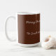 Warm up your winter with this charming personalized ceramic mug! The design features an adorable watercolor snowman nestled in a hot cocoa cup, surrounded by festive spices and a miniature Christmas tree. The reverse side includes the festive greeting "Merry Christmas" and can be customized with the recipient's name.