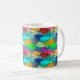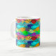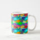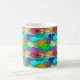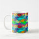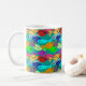 Esta taza tiene el diseño de una escuela de peces en el océano, con nado verde, azul, naranja, amarillo, rojo, rosa y azul-verde.