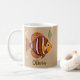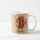 Taza de café personalizada de pez tropical elegante y moderna con fondo marrón.