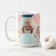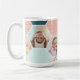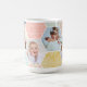 Pretty pastels in a hexagon quilt pattern with a place for 4 pretty pictures to customize this mug for parents, grandparents, pet parents, or pretty much anyone on your gift list.