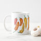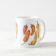 Taza de cerámica con un patrón ilustrado de pimientos rojos, naranjas y amarillos coloridos. Las posavasos a juego están disponibles. Derechos de autor del arte: Dominic White. Reservados todos los derechos.