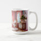 Elegant pink and gold baroque mug with vintage decor, ornate mirror and royal charm, perfect for elegant coffee rituals.