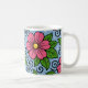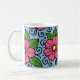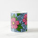 Taza De Café Pink Florals with Green Leaves and Curved Details