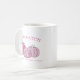 Enjoy autumn mornings, with this country logo inspired, pink bow and pumpkins "Pumpkin Patch Farm" mug. The options to personalize all text on the mug are available.