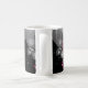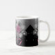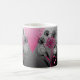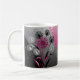 Pink, White and Black dandelion design on a black, silver and pink background coffee mug.