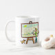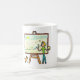El diseño de la pintura artística muestra a un apasionado del arte utilizando acuarelas o aceites para pintar un gran lienzo sobre el caballete de un artista. El artista sostiene un pincel en una mano y una paleta en la otra. Gráfico divertido para los amantes del arte.