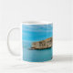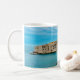 Pintura de las murallas de la fortaleza de Dubrovnik, playa y agua turquesa. Famosa playa de Banje con vistas a las murallas de la ciudad de Dubrovnik y al casco antiguo. Hermosa agua turquesa y manada amarilla.
