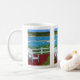 Esta vívida pintura al pastel al óleo presenta una silla Adirondack blanca en una padiatio de ladrillo rojo con vista a Cape Cod. Verde brillante, azul, rojo y amarillo crean un impresionante paisaje marino de verano en la costa de Nueva Inglaterra.