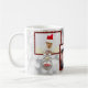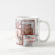 Tazas de encargo con 3 fotos en falsos marcos rojos del purpurina. Añada sus fotos con el mensaje - Felices Navidad y Feliz Año Nuevo y fecha (año). Platee el ornamento en un lado. Fácil corregir. Regalo perfecto para los abuelos, tía, tío del navidad,….