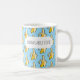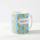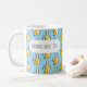 ¿Son plátanos sobre el café? Una taza con la leyenda "BANANAS SOBRE CAFÉ" sobre un dinámico patrón de píxel estilizado de arte plátanos amarillos sobre un fondo azul cielo. Utilice "Personalizar esta plantilla" para realizar cambios de texto simples en el texto, como un lema alternativo; estos cambios se reflejan en ambos lados. Utilice "Editar diseño" para obtener más control sobre elementos como el tamaño del tipo de letra, el color y el posicionamiento; recuerde hacer estos cambios más grandes tanto delante como detrás.