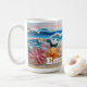 Floral Abode, un aspecto 3d de un océano azul, una playa de arena y un paraíso floral pastel en un diseño de envoltura de barro con una plantilla personalizada para monogramar o añadir texto.
