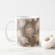 Taza De Café Plumas de pavo real blancas y negras en Taupe Tan