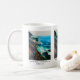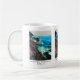 Esta taza cuenta con un hermoso y espectacular paisaje de acantilados rocosos con árboles de Monterey Cypress. Esta escena es una copia restaurada de "Out to Sea Point Lobos", un aceite de 1915 sobre lienzo del pintor estadounidense Guy Rosa, 1857-1925. Guy Orlando Rosa nació el 3 de marzo de 1867 en San Gabriel, California. Era el séptimo hijo de Leonard John Rosa y Amanda Jones Rosa. Su padre era un destacado senador de California. Él y su esposa criaron a su gran familia en un amplio rancho y viñedo del sur de California -el pueblo de Rosemead en el valle de San Gabriel tiene el apellido. Point Lobos y la Reserva Natural Estatal Point Lobos es la "joya de la corona" de los 280 parques estatales de California. Francis McComas, artista paisajista nacido en Australia, describió el punto como el "mayor encuentro de tierra y agua en el mundo". El punto vecino de Lobos es "uno de los hábitats marinos más ricos de California". El hábitat oceánico está protegido por dos zonas marinas protegidas, la Reserva Marina Estatal Point Lobos y el Área Estatal de Conservación Marina Point Lobos.
