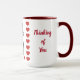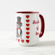 Esta taza de café de dos tonos roja y blanca de Poodle "Pensando en ti" es única. Diviértete comprando y adquiriendo los otros productos de regalo diseñados para combinar con Poodle "Pensando en ti" como Tarjetas de Felicitación, camisetas de manga larga para mujeres, Bolsas Tote, Sellos de Goma, Papelería y Sobres a Juego.