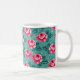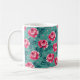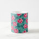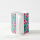 Taza De Café Pretty Pink Roses and Polka Dot Pattern on Teal