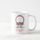 Navidades personalizados taparrabos de café con una foto de su nieto con un borde rojo de dos tonos, árboles navideños acuarelas, una camioneta roja y el lindo dicho "mi primera navidad como abuelo", y el año.