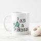 Esta taza incluye una imagen del carácter animado de la rana, Jean Bob, de la película clásica, la princesa del cisne, con las palabras "que soy príncipe!". Diseñado por Amelia Spindley.