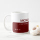 Un café-taza moderno medio blanco y medio rojo personalizado con tu propio nombre, iniciales y profesión o negocio