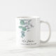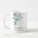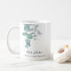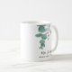 Este elegante café del profesor está decorado con hojas de eucalipto de color agua en tonos suaves de verde.