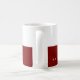 A half dark red (editable color) and white coffee mug, personalized with your name and profession (business administration)