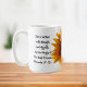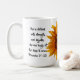 Esta jarra de girasol y verso de la Biblia muestra una foto de girasol con las palabras de Proverbios 31:25 al lado de la flor. Las palabras son fáciles de personalizar y añaden su verso de escritura favorito o su dicho motivacional. Proverbs 31:25 habla de cómo la mujer cristiana ideal es cómoda en su vida actual, digna sin preocupaciones, y preparada para lo que traiga el futuro. "Ella está vestida con fuerza y dignidad; puede reírse de los días por venir. Proverbios 31:25"