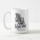 “Be Still and Know” from Psalm 46:10, styled in bold vintage script. This devotional mug blends quiet strength with clean typography. Perfect for morning prayer, gifting, or daily reminders of faith and calm.