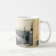 Esta vista impresionante del puente de Pont Alejandro de París Francia que atraviesa el Sena, se acoda sobre la superficie del yeso de la firma de Chaden. Inspirado por las etiquetas del equipaje usadas en troncos del vapor, esta taza se sella con matasellos y un límite para los lugares románticos.