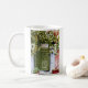 Una puerta verde vieja, resistida ocultada casi detrás de la viticultura colorida en el lado de la casa. El yeso rojo de la peladura en la pared añade un contraste agradable el verde de la vid. Una reproducción de una pintura original de la acuarela.