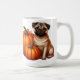 Taza De Café Pug Adorable sentado al lado de calabazas y hojas