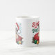 Sip in style with this cute pug wearing a Santa hat and holding a gingerbread cookie, surrounded by ornaments and snowflakes. Perfect for pug lovers and festive mornings!