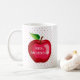 Regalo del profesor de Apple Personalizado Polka Dots Coffee Mug. Un lindo regalo de agradecimiento a los profesores con una manzana roja y puntos de polka. Hace un regalo perfecto para los Navidades de profesores. Personalice este diseño personalizado con su propio nombre o texto.