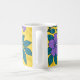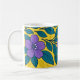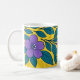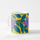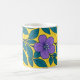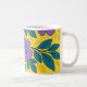 Taza De Café Purple Flowers & Teal Leaves on Yellow Background