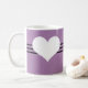 La dulce y encantadora Mug del Corazón Moderno, con un fondo de lavanda y un corazón lindo y un borde a rayas. ¡Esta taza linda y chica es perfecta para disfrutar de su bebida caliente favorita! Personalizar con el texto de su elección. Haga clic en "Personalizar" para encontrar opciones de personalización adicionales.