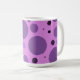 Diseño divertido y caprichoso con fondo violeta claro con puntos morados más oscuros en varios tamaños.