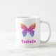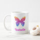 Este nombre personal de mug incluye una mariposa purpurina de imitación de arco iris. Personalizarlo con un nombre.