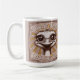 Un avestruz caricaturista con ojos grandes y expresivos mira directamente al espectador, rodeado por la lúgubre frase "¿A QUÉ MIRAS?" en negrita. El fondo está decorado con una ráfaga de rayos amarillos y marrones que le dan un toque dinámico al diseño.