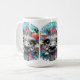 Un avestruz con rasgos exagerados se representa sobre un fondo vibrante y colorido, con la frase "¿QUÉ PASA?" en letras en negrita encima de su cabeza. La obra combina elementos de estilos de arte pop y caprichosos, creando una pantalla llamativa.