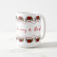 Los colores blanco y rojo son audaces y frescos para las vacaciones. Esta taza tiene un borde de guirnaldas de poinsettia rojo brillante en la parte superior e inferior. Un mensaje divertido, "¡Que tus días sean alegres y brillantes!" Disfruta de tu café y comparte uno para un amigo.