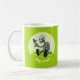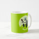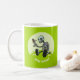 Nunca dejes de tener curiosidad por el mundo. Una taza motivacional con un curioso robot verde viendo una mariposa colorida por primera vez, colocado en una colina de hierba con margaritas. Utilice "Personalice esta plantilla" para cambiar el texto "¡Siéntese curioso!" si lo desea; los cambios de texto se reflejan en ambos lados. Podría ser una imagen sobre amistad, descubrimiento o aprendizaje. Un diseño que combina ciencia ficción y naturaleza.