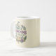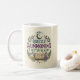 This "Quietly Summoning a Better Reality" design features a whimsical blend of mystical elements including a celestial moon, lavender sprigs, and a magic spellbook. Perfect for morning rituals and manifestation, the artwork combines deep purple, forest green, and gold tones in a vintage-inspired illustration that makes every sip feel enchanted.