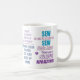 Los dichos y las citas acalorados en un diseño tipográfico brillante y moderno. Esta taza de café le haría un regalo fabuloso a los edredones. Las citas incluyen: "Mucha tela, poco tiempo de coser" y "Cuando la vida te da sobras hacen un tejido". Agregue su propio nombre para personalizar un presente único.