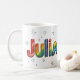 Bunt, verspielt und voller Lebensfreude – dieses farbenfrohe Namensmotiv „Julia“ bringt gute Laune auf jedes Produkt! Die kräftigen Regenbogenfarben im handgezeichneten Scribble-Stil verleihen dem Design eine charmante Kreide-Optik, während kleine Herzen und Kritzeleien das Ganze liebevoll abrunden.