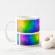 Rainbow Spectrum 11 oz ceramic coffee mug with vibrant rainbow gradient bands and white borders. Colorful modern drinkware, dishwasher and microwave safe, perfect gift for coffee lovers.