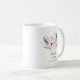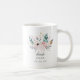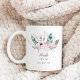 Taza de café personalizada para la novia con un diseño exclusivo que incluye un elegante guión clásico y un ramo floral boho rústico. Personaliza con el nombre de la novia y la fecha de la boda para un regalo único de despedida de soltera/fiesta para la futura novia.