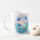Empiece el día inspirándose en estas encantadoras tazas con un caprichoso ilustracion de un contenedor en forma de rana lleno de una serena escena acuática. En el interior, los coloridos peces koi nadan con gracia entre plantas acuáticas verdes y guijarros, mientras que una pequeña figura humana arroja un bote por encima de la línea de agua. Los suaves colores pastel y el diseño de ensueño hacen de estos tazas el lugar perfecto para disfrutar de su bebida favorita.